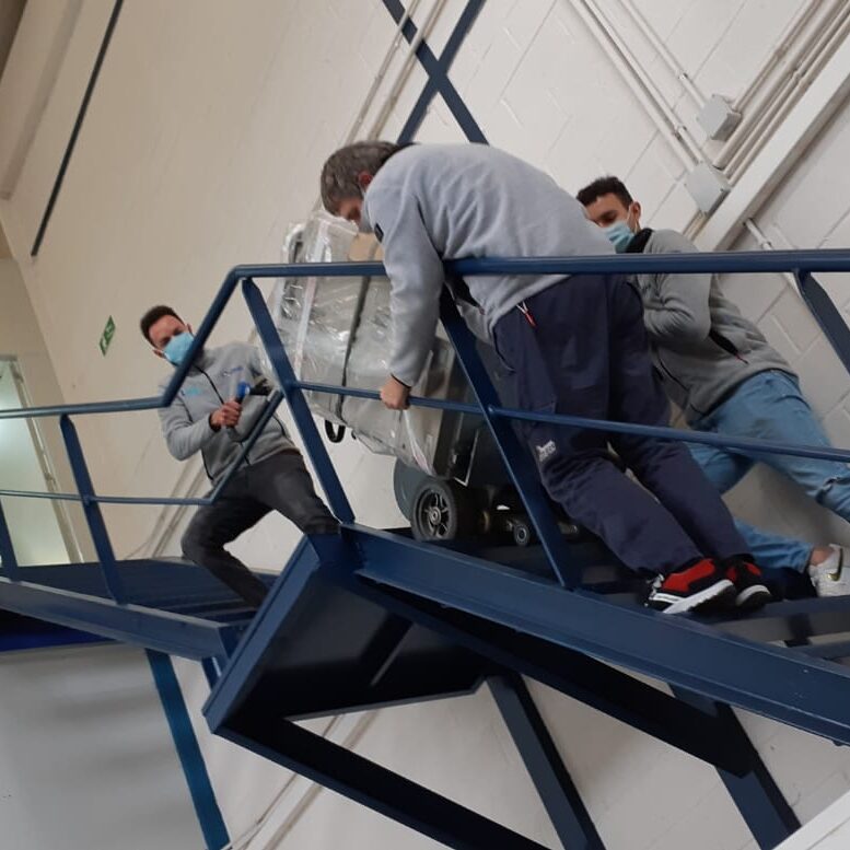 Servicio especializado en transporte de equipos informáticos y equipos médicos. vehículos carrozados con plataforma y dos operarios por vehículo.